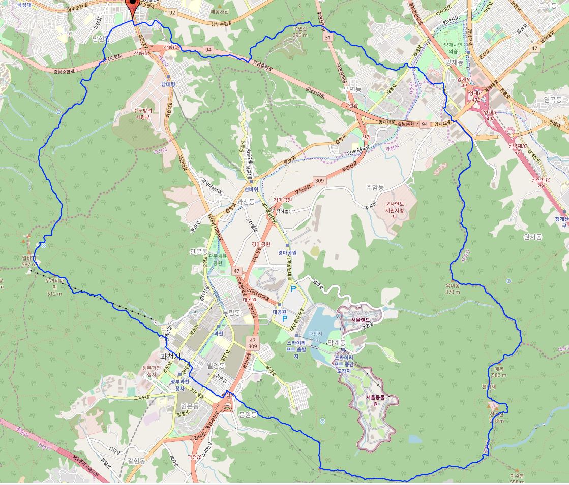 사당역~연주대~자하능선~과천시청~과천매봉~청계산 매봉~옥녀봉~화물터미널~태봉주유소~우면산~사당역