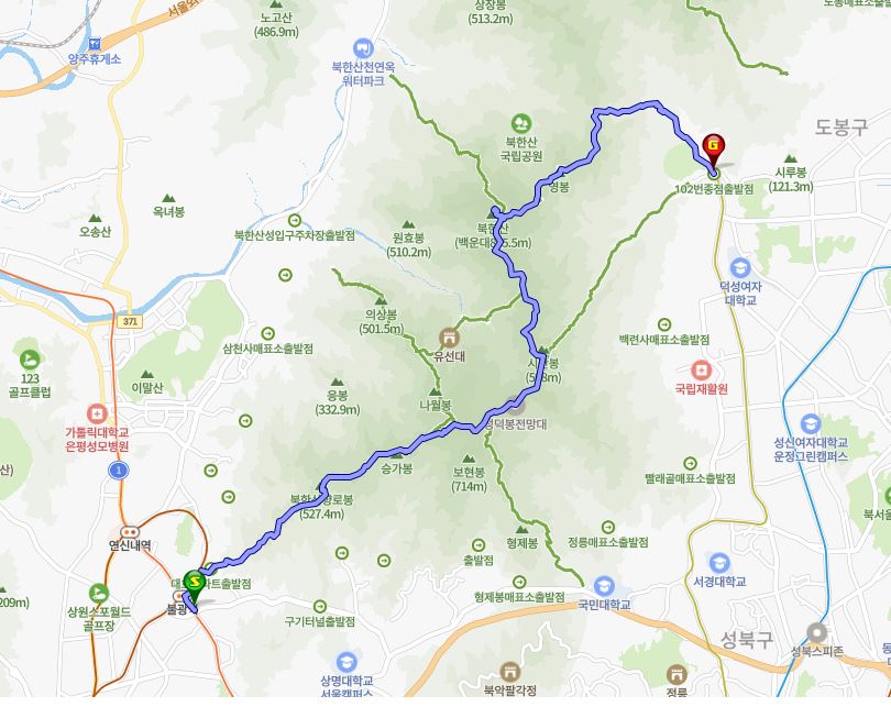 코스는 : 불광역~족두리봉~비봉~문수봉~백운대~영봉~육모정~우이동