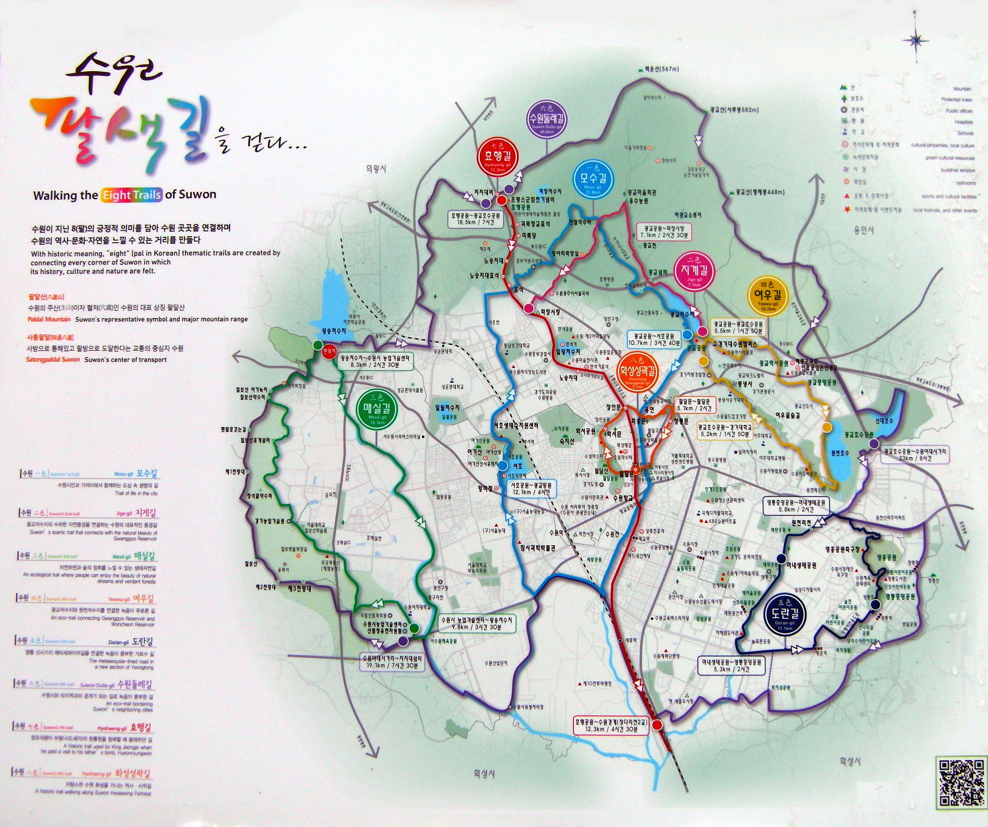 수원둘레길, 수원팔색조길 거리 65km 누적상승1,800 m