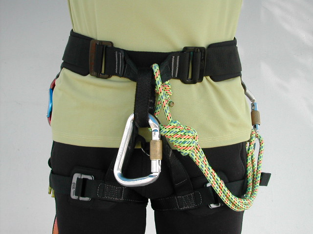 윗고리와 아랫고리를 통과하여 장착하는 등반자들도 있습니다.