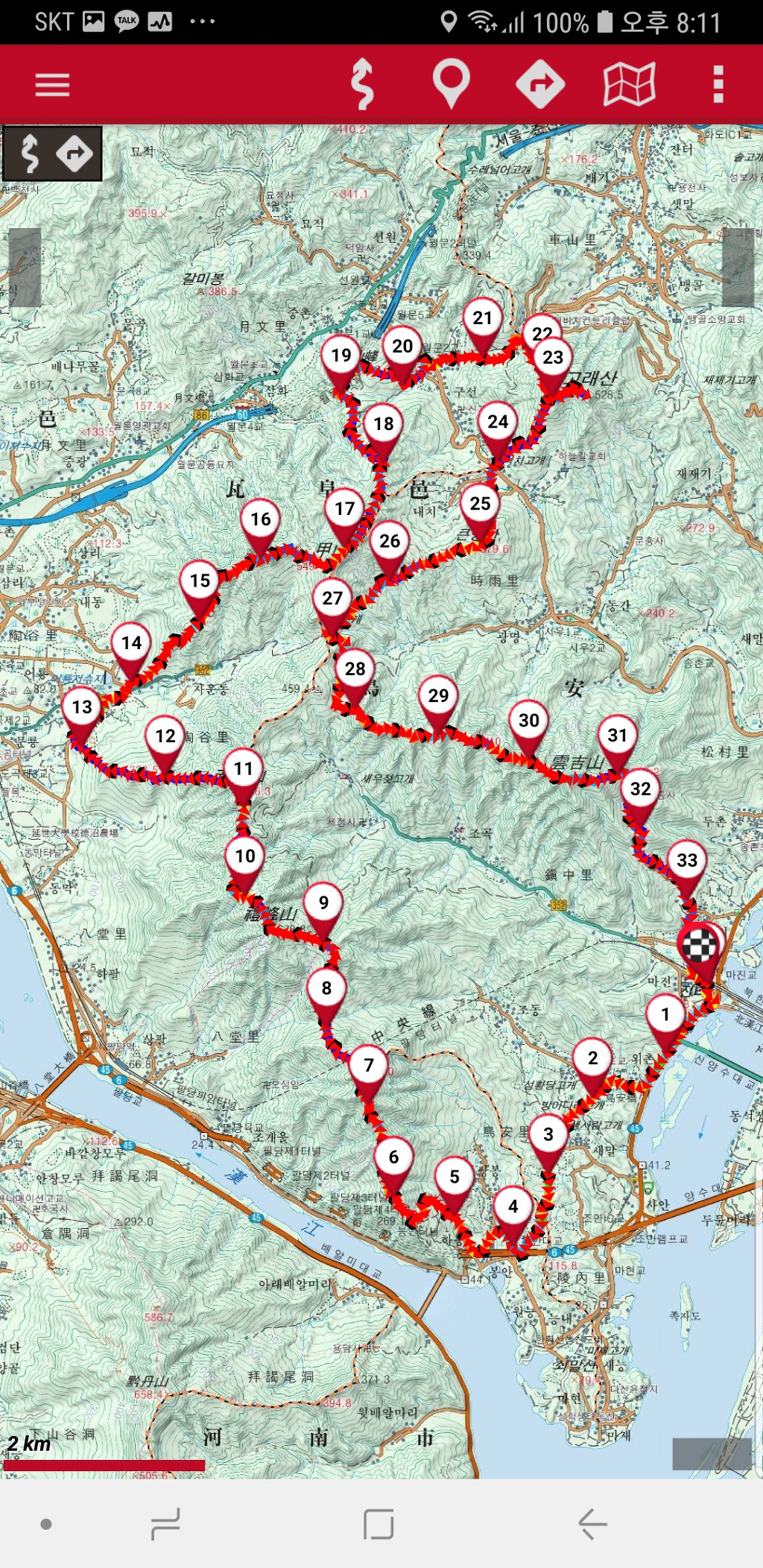 25km 지점 큰명산 올라가기 전 1km 정도 알바 다운받은 gps로 가면 하천이 나옴 어떻게 건너갔지 ㅋㅋㅋ 그래서 트랭글 코스북으로 가보니 사유지로 막혀 있어서 네이버지도 이용해서 이동함.