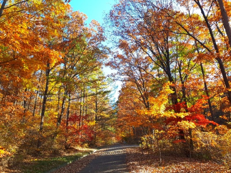 오대산은 강원도에서 가장 아름다운 단풍 명소 중 하나입니다. 특히 봄철엔 벚꽃으로 유명하지만 가을에도 황금빛 단풍이 매우 아름다워요.