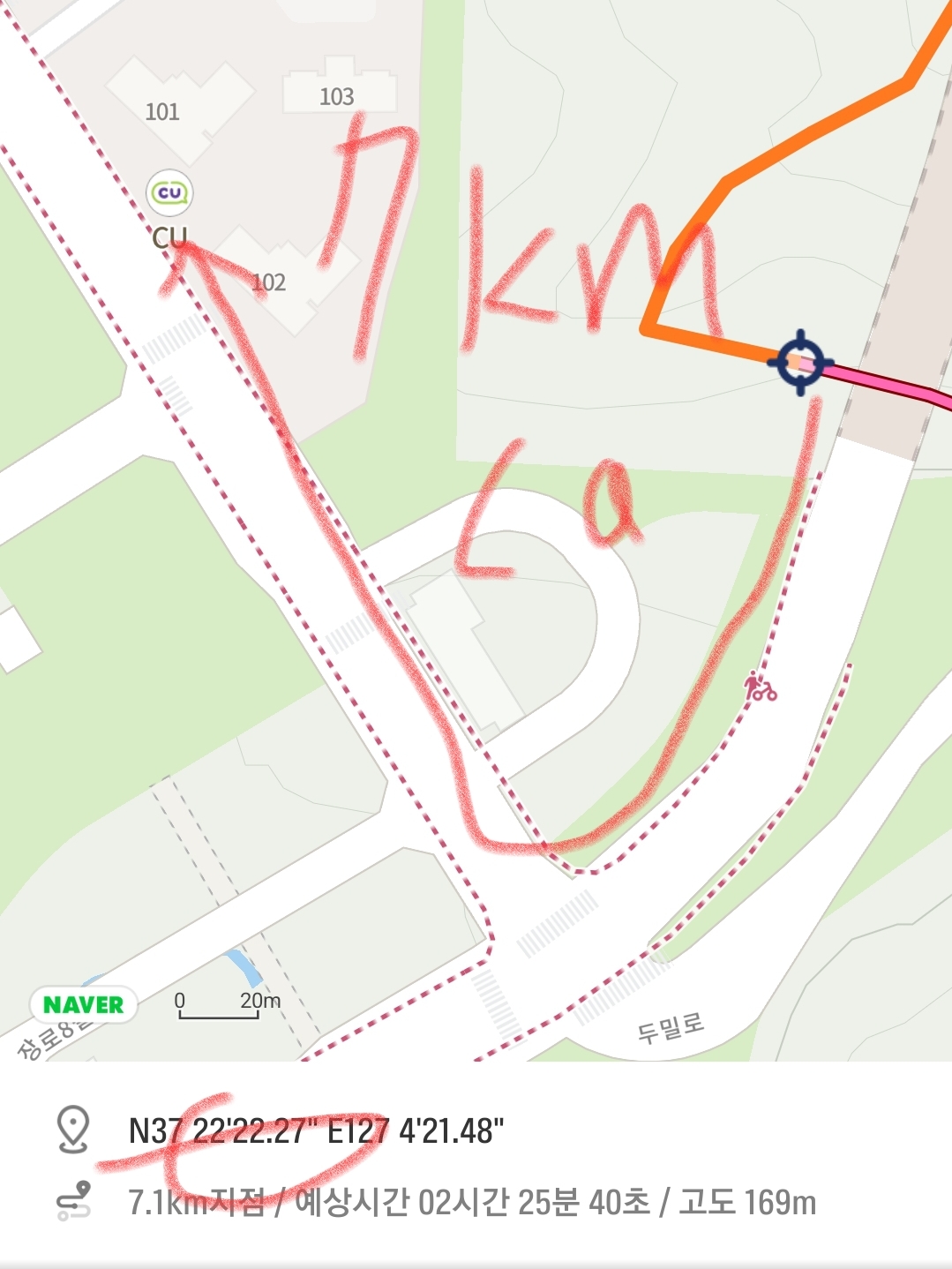 7km 주로 에서 많이 벗어남 비상용