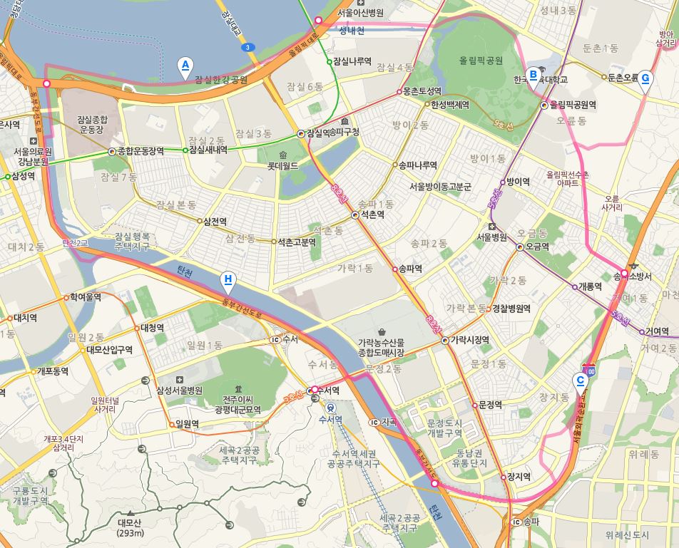 성내천, 한강, 탄천, 장지천을 연결하는 생태하천이 어우러진 순환형 동그라미 코스 입니다.